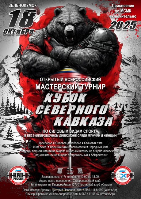 Открытый Всероссийский мастерский турнир по силовым видам спорта "КУБОК СЕВЕРНОГО КАВКАЗА", 18 октября 2025 года, город Зеленокумск, Ставропольский край