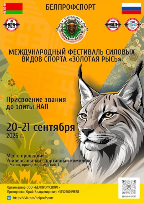 Открытый Международный фестиваль силовых видов спорта "ЗОЛОТАЯ РЫСЬ", 20-21 сентября 2025 года, город Минск, Республика Беларусь