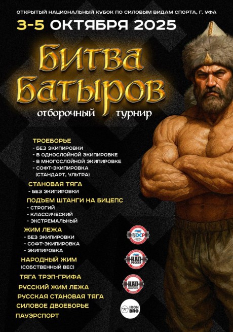 Открытый отборочный турнир по силовым видам спорта "БИТВА БАТЫРОВ", 4-5 октября 2025 года, город Уфа, Республика Башкортостан