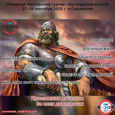Открытый мастерский жимовой турнир Запада России "БОГАТЫРСКАЯ СИЛА - IX", 27-28 сентября 2025 года, город Смоленск