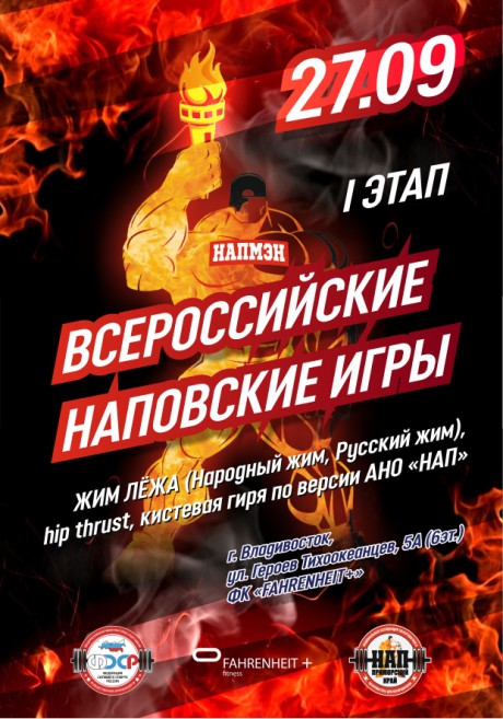 "Всероссийские НАПовский Игры, I этап": Жим штанги лёжа, Народный жим, Русский жим, Hip Thrust, Кистевая тяга гири, 27 сентября 2025 года, город Владивосток, Приморский край
