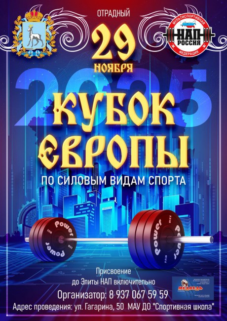 Открытый Кубок Европы по силовым видам спорта, 29 ноября 2025 года, город Отрадный, Самарская область