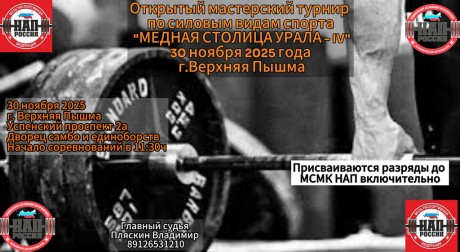 Открытый мастерский турнир по силовым видам спорта "МЕДНАЯ СТОЛИЦА УРАЛА - IV", 30 ноября 2025 года, город Верхняя Пышма, Свердловская область