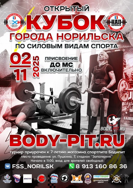 Открытый Кубок МО города Норильск по силовым видам спорта, в честь дня рождения магазина "BODY-PIT.RU", 2 ноября 2025 года, город Норильск, Красноярский край