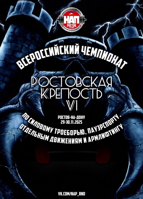 Открытый Всероссийский Чемпионат по пауэрлифтингу, пауэрспорту, армлифтингу и силовым видам спорта "РОСТОВСКАЯ КРЕПОСТЬ - VI", 29-30 ноября 2025 года, город Ростов-на-Дону