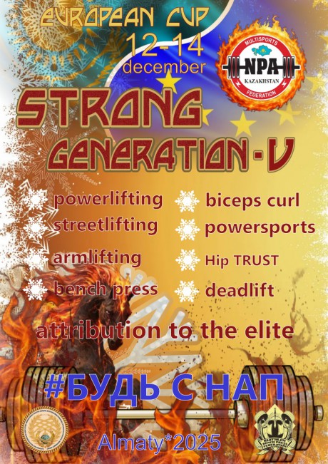 Открытый зимний Кубок Европы по силовым видам спорта "STRONG GENERATION - V", 12-14 декабря 2025 года, город Алматы, Республика Казахстан