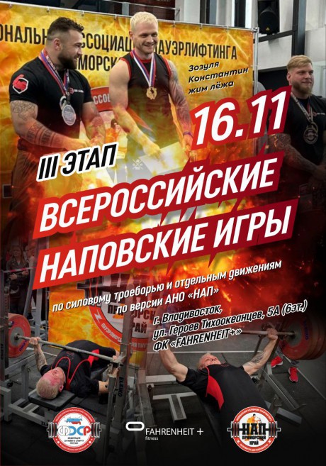 "Всероссийские НАПовский Игры, III этап": Троеборье и отдельные упражнения, 16 ноября 2025 года, город Владивосток, Приморский край