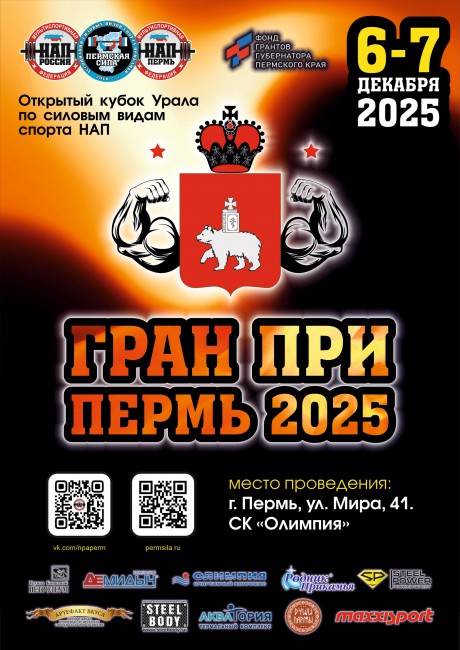 Открытый Кубок Урала по силовым видам спорта "ГРАН ПРИ ПЕРМЬ - 2025", 6-7 декабря 2025 года, город Пермь