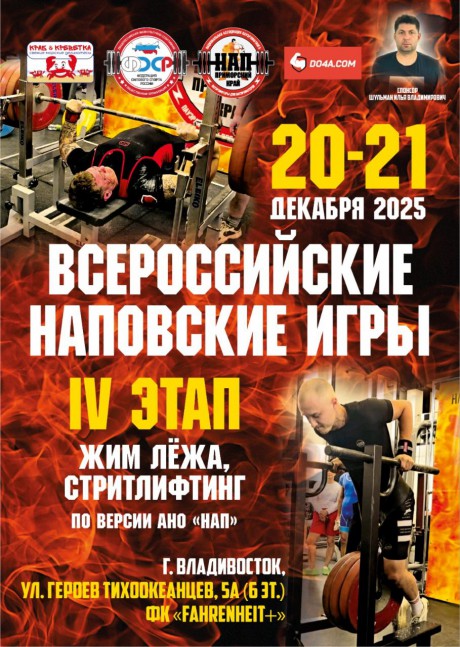 "Всероссийские НАПовский Игры, IV этап": Стритлифтинг, Армлифтинг, 21 декабря 2025 года, город Владивосток, Приморский край