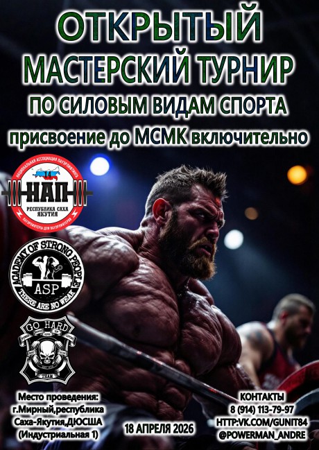 Открытый мастерский турнир по силовым видам спорта, 18 апреля 2026 года, город Мирный, Республика Саха-Якутия