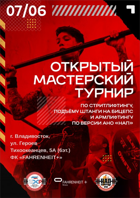Открытый Мастерский турнир по стритлифтингу, армлифтингу и подъёму штанги на бицепс, 6-7 июня 2026 года, город Владивосток, Приморский край