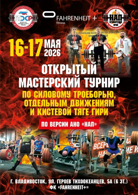 Открытый Мастерский турнир по силовому троеборью, отдельным упражнениям и кистевой тяге гири, 16-17 мая 2026 года, город Владивосток, Приморский край